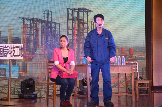在大家熱烈的掌聲中,司相芳總經(jīng)理作新年致辭。司總首先代表公司向大家表示衷心感謝并致以節(jié)日的祝賀,向奮斗在生產(chǎn)一線的全體員工致以新春的祝福和親切問候。司總講到,公司舉辦文藝晚會(huì),旨在進(jìn)一步凝心聚力,乘風(fēng)破浪,永往直前,挑戰(zhàn)2015。并強(qiáng)調(diào),節(jié)日期間要千方百計(jì)確保安全,確保思想到位、組織人員到位、管理到位、信息溝通到位,徹底排查隱患,確保過一個(gè)安全、愉快、祥和的春節(jié)。最后,司總給大家拜早年。