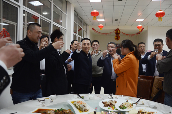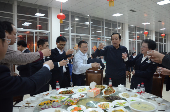 隨后王謹(jǐn)董事長(zhǎng)致祝酒詞,王董事長(zhǎng)首先代表公司董事會(huì),向一直以來信任和支持榮信煤化的各級(jí)領(lǐng)導(dǎo)和朋友們,向與公司一道奮勇攀登的同事及家屬,致以新春的祝福和崇高的敬意。王董事長(zhǎng)指出,2015年,是榮信煤化奮力攀登的一年,是挑戰(zhàn)極限的一年。在這不尋常的一年中,我們奮力拼搏,披荊斬棘。我們?cè)陧频Z前行中做到了同行業(yè)最好水平,黨委政府、股東單位、社會(huì)各界為我們點(diǎn)贊!當(dāng)2015年漸行漸遠(yuǎn),回望一年來走過的路、越過的坎,才驀然發(fā)現(xiàn),身后的崎嶇,在不知不覺中已抬升了我們的高度。