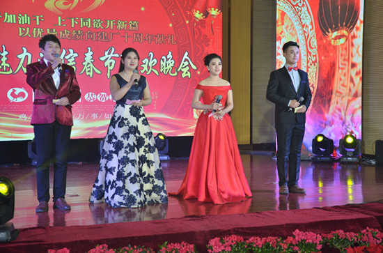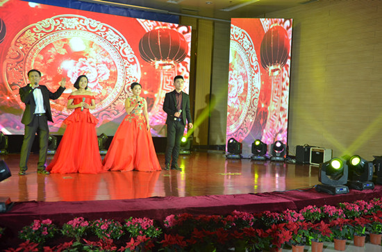 在司總熱情洋溢的致辭之后,本場(chǎng)文藝晚會(huì)正式拉開帷幕。本次晚會(huì)以“擼起袖子加油干,上下同欲開新篇,以優(yōu)異成績(jī)向建廠十周年獻(xiàn)禮”為主題,匯集了歌曲、舞蹈、小品、相聲、三句半、器樂、武術(shù)、朗誦等眾多藝術(shù)形式,采用LED大屏幕及現(xiàn)代化的燈光舞美設(shè)計(jì),舞臺(tái)流金溢彩,視聽火爆震撼,整場(chǎng)演出激情洋溢,恢弘大氣,真誠(chéng)感人,深刻詮釋了榮信集團(tuán)是一個(gè)充滿著激情,充滿著真誠(chéng),充滿著愛,充滿著希望的幸福企業(yè)。最后,文藝晚會(huì)在大合唱《陽光路上》的熱烈氛圍中落下帷幕。