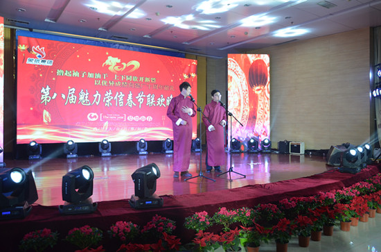 猴年大吉辭舊歲,金雞報(bào)曉迎新年。元月25日晚,集團(tuán)公司多功能廳內(nèi)燈光閃耀,歌舞飛揚(yáng),洋溢著濃郁的節(jié)日氣氛,集團(tuán)公司第八屆“魅力榮信”新春文藝晚會(huì)在這里隆重上演。山東恒信集團(tuán)董事長(zhǎng)、山東榮信集團(tuán)總經(jīng)理司相芳,山東恒信集團(tuán)、山東恒信焦化有限公司及公司部分領(lǐng)導(dǎo),與集團(tuán)公司員工代表共計(jì)500多人一起觀看演出,喜迎雞年新春的到來。